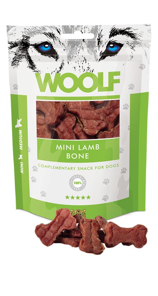 Woolf Mini Lamb Bone ízletes és puha, 100%-ig kiváló minőségű bárányhúsból, bármilyen életkorú, kis-, közepes- és nagytestű kutyának. A jutalomfalatkák kíméletes főzéssel készülnek, kémiai adalékanyagok, tartósítószerek és színezékek hozzáadása nélkül.