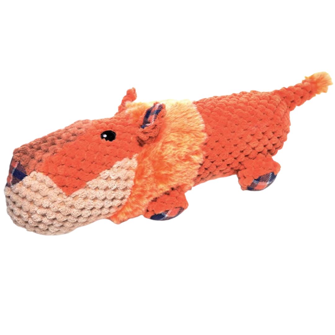 Narancs színű, henger alakú, puha mikroplüssből készült, mókás oroszlán formájú játék, kifejezetten kutyák számára. A FAT BOYS Plüss Oroszlán belsejében beépített sípoló párna található. Minden részén puha és laza elemeket (fülek, karok, lábak) tartalmaz, játékra bátorítva kedvenced.